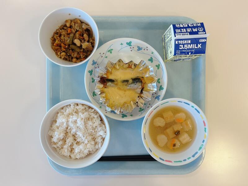 本場のとふめしにはさばの水煮が入りますが、今日の給食では、さばの塩焼きを提供し、自分でさばの身をほぐして、混ぜて食べる形にしました。