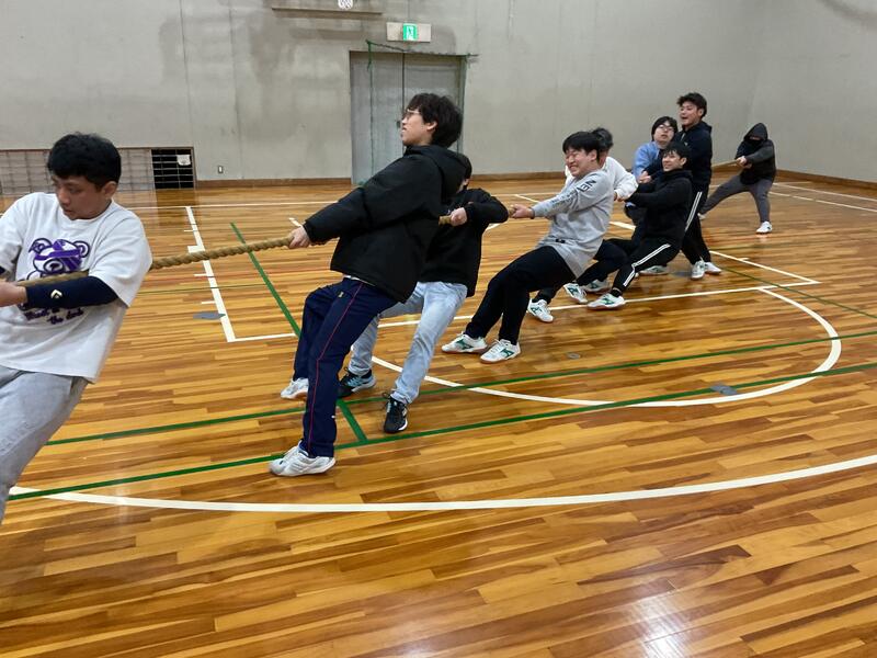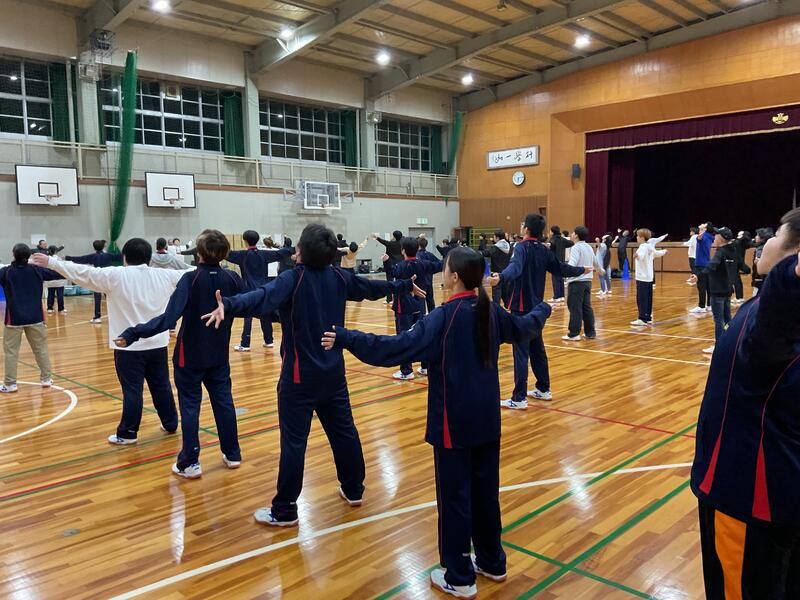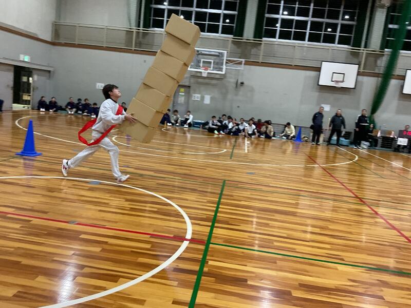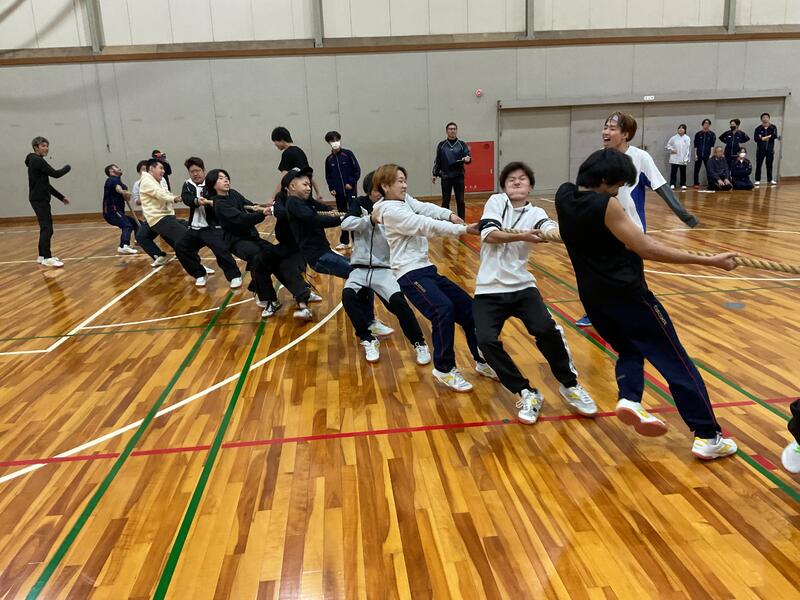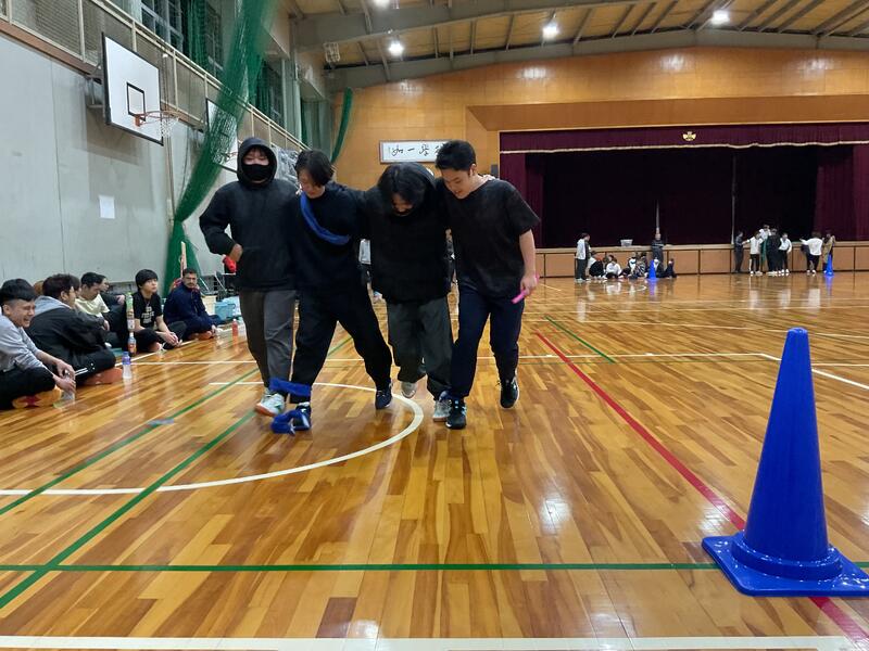 令和7年11月4日(火)、体育大会を実施しました。今年度のスローガンは「輝ける瞬間 一心不乱」です。一人一人が輝いた、素晴らしい体育大会になりました。はじめに、準備運動としてラジオ体操をしました。生徒らのようすをみたときに、この体育大会への本気度があらわれていました。シャトルランリレー、宅配物リレー、X人Y脚リレー、綱引き、大縄跳びの種目を行いました。各学年、一致団結して優勝を目指して頑張りました。