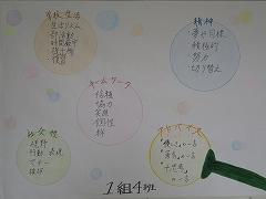 漫画でもありアニメにもなっている「鬼滅の刃(きめつのやいば)」の主人公の生き方を通して、自分たちの人生に生かせる考え方をまとめました。真面目さ、継続性、家族愛に焦点を当て発表してくれました。