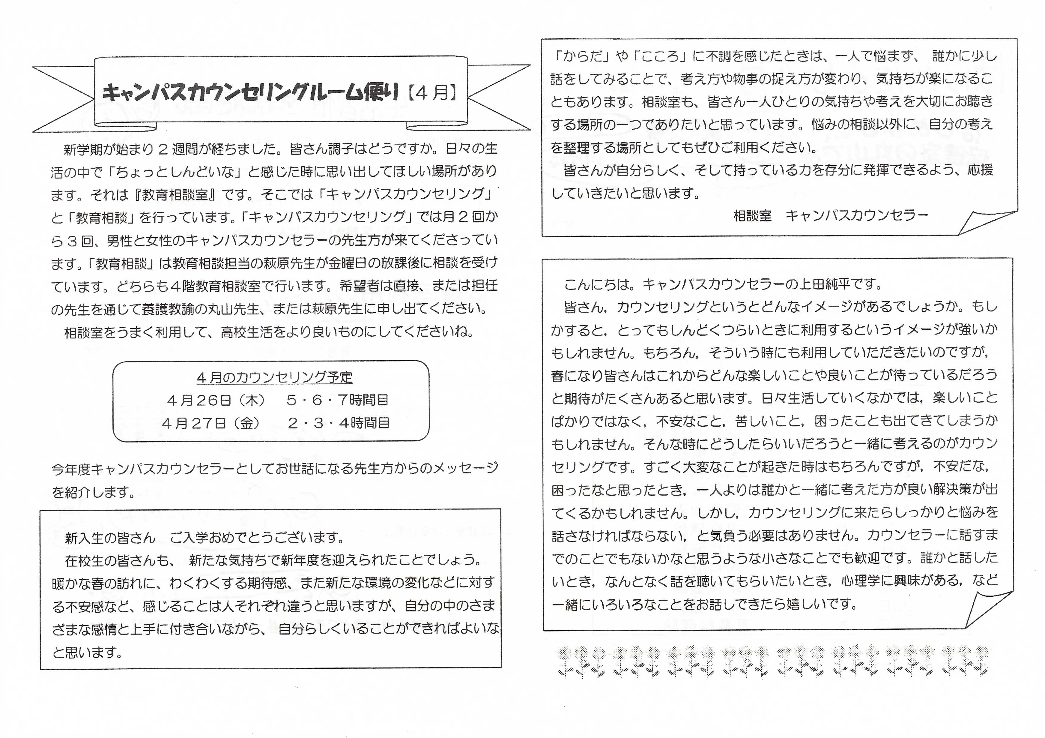 キャンパスカウンセリングルーム便りNo.1(20190419)