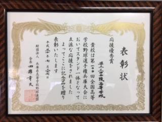 1月18日に兵庫県高等学校野球連盟の平成30年度優秀選手賞の授賞式が行われました。