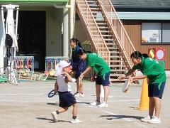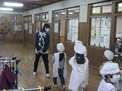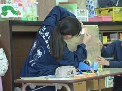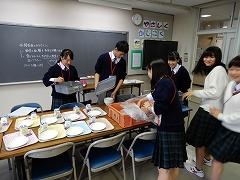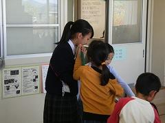 給食の準備で給食室へ行くときなど、学年の児童たちによっては競って本校生徒と手をつなごうとしていました(いわゆる、お姉ちゃんのとりあいです)。給食も楽しく頂きました。また、お昼休みなども引っ張りだこでした。
