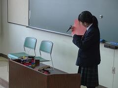 上の写真は授業の後半で作り方を教えていただいたペットボトル砲です。ペットボトルの底を切り取り、半分に切った風船をかぶせて作ります。そして口には柔らかい和紙などを丸めて詰め、底の風船を引っ張って飛ばします。安全で楽しく遊べる玩具として完成度が高く、生徒たちは喜んだり驚いたりしていました。