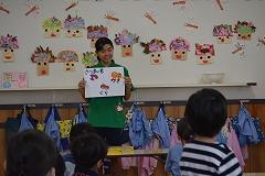 授業の前半では、絵本の読み聞かせの実演をしていただいたあと、