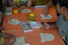 「アンパンマン」「ひげじいさん」の手遊びのあと、2年生が絵本「たまごの赤ちゃん」の読み聞かせをし、1年生2名が絵本「くっついた」をもとに手作りのパネルシアターを実演しました。生徒たちはインターンシップ中、来館受付、施設整備などの合間にパネルシアターの製作、練習を行い、今日の発表に備えました。乳児から小学生までの子どもたちと保護者という、普段の実習とはまた違う観客を前に、生き生きと演じていました。