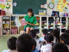 初めのうちは緊張気味だった生徒も、子どもたちが徐々に手遊びに参加してくれるのを見て、最後にはのびのびと絵本を読み、歌を歌えるようになっていました。日ごろの実習の成果を発揮できたのではないでしょうか。