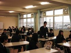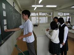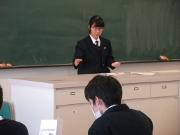 3月8日(火)、親和女子大学清水篤教授、湊川短期大学佐伯岳春講師にお越しいただき、課題研究発表会を行いました。昨日の練習ではうまくいかなかった生徒も、いざ始まってみるとなかなかしっかり発表できていました。来ていただいた先生方からも「雰囲気が和やかでよい」「表情がとてもよく、大きな声で発表できていた」といったお褒めの言葉をいただきました。生徒たちの中には「まだまだ納得できるものでなかった」という声もありましたが、よく頑張ったのではないかと思います。明日は教育入門最後の授業です。