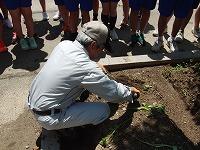 6月3日(火) 毎年10月下旬に行われる北摂中央幼稚園とのイモ掘り交流に備え,学校の花壇にイモの苗を植えました。みな初めての経験で戸惑いながらも,校務員さんの指導を受けながら約350本の苗を植え終わりました。園児との交流を楽しみに苗の世話をしていきたいと思います。