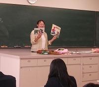 6月2日(火)今日は、オリンピア神戸北保育園保育士の玉田勝世先生を講師にお招きして 「乳幼児の発達段階と絵本の読み聞かせ」 という題で講演をしていただきました。年齢に応じた本の選択方法や、絵本の読み聞せのコツを教わりました。来週から実習が始まります。練習の成果を発揮してほしいです。
