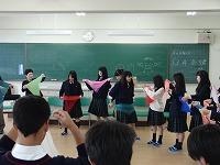 前半は「なぜ生きる&なぜ学校で働く」というテーマのもと、高校・大学時代の話、教師を目指すきっかけや教職に就いてからの話をされ、生徒達はとても興味深く聞き入っていました。後半は「冒険教育」を通して、「集団の気持ちを一つにする」「相手を信頼する」ことを学びました。
