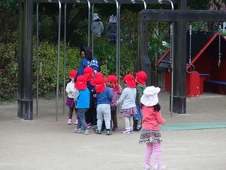 衝突すると危険な遊具はあらかじめ固定してあります。園児の安全のため、万全の配慮がなされていました。今回も様々な経験を得て、学び多き実習になりました。第4回の実習は10月4日(火)です。