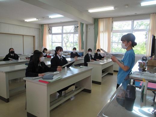 今年度のトップバッターは幼児教室 Smile 代表の出口先生にお越しいただき、「子どもの発達と保育」(家庭科専門科目)で授業をしていただきました。