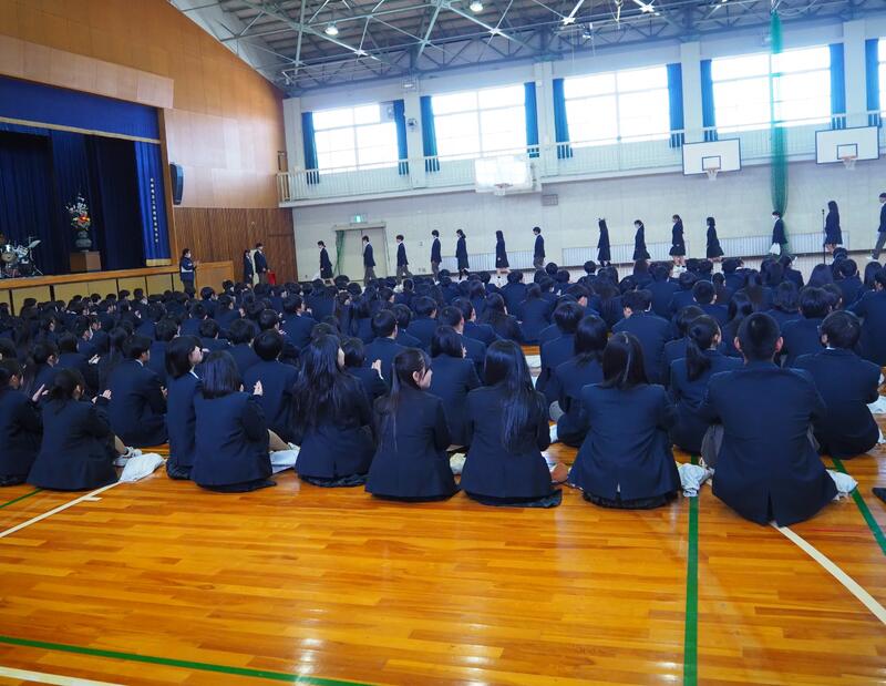 7限目に防災避難訓練を実施しました。全校生徒及び教職員が地震発生から火災を想定した避難訓練を行い、グラウンドに避難した後は三田消防署の方から講話を頂きました。講話では初期消火の重要性、消火器の能力や使用法を教えて頂いた上で、各クラスの代表生徒が消火訓練を行いました。