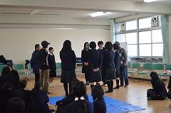 手づくり紙芝居が、自分の思いを自由に表現できるものであり、紙芝居の読み手と聞き手は双方の対話を楽しむことができる、という点についてご自身の体験も交えながら、お話していただきました。いくつかの紙芝居を目の前でに読んでいただき生徒たちは興味深く聞き入っていました。