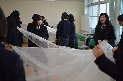 ③彩色した布・たこ糸・椅子を用いて巨大なオブジェをグループで造形。