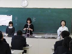 10/28(月)・30(水)・31(木)の3日間、「家庭基礎」の授業で茶道実習を行い、1年生全員が茶道を体験しました。講師として、表千家正教授の矢野富美子先生をお招きしました。