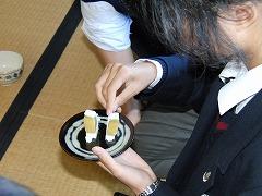 矢野先生から「和敬清寂」という千利休の4規(法律)のお話を聞き、お茶を点ててくれた人に感謝しながらのむ、点てる方は心をこめて点てるということを意識しながら実習ができました。畳に正座して座ると落ち着いた気持ちになりました。人を「おもてなす」ことは簡単なことではありませんが、その一部を今回の授業で学ぶことができて良かったです。また、「一期一会」について話を聞き、今のこの時間をもっと大切にしようと思いました。