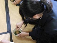 茶道の歴史やお点前、日本人の「おもてなしの心」について学んだのち、生徒一人一人がお茶を点てて、和菓子をいただきました。