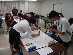 最後に、特に印象に残ったことについて話してくれました。1人の参加者は、1日目は帰りたいと思ったけれど、みんなとすぐ打ち解け、すぐに楽しくなったとのことでした。また、英語は今まではすべて理解しなければいけないと思っていたけれど、少しずつ理解していけばいいということがわかったそうです。そして、今までで英語は一番苦手な教科でしたが、帰国してからは英語の夏期課題もすらすらと進み、勉強することがとても楽しくなったそうです。もう1人の参加者は、最初は英語が聞き取れなかったのですが、ホストファミリーや現地の学生がとてもフレンドリーに気軽に話しかけてくれて、最後には英語で話すことが楽しくなったそうです。また、今までネガティブ思考だったのですが、研修に参加して、自分でやってみよう、やってみないとわからない、とプラス思考に変わったそうです。