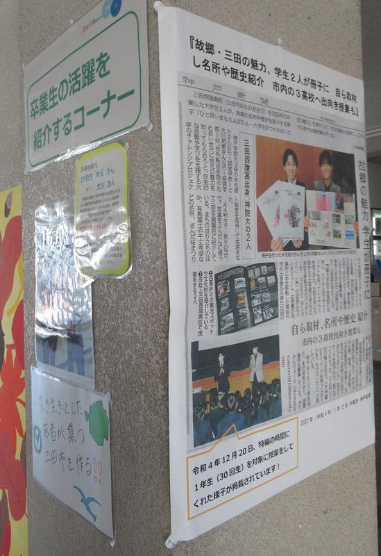 先日、こちらのブログでも紹介をしていた、本校卒業生(25回生)、現在は神戸学院大学3回生の2人による取組みが、令和5年1月12日付け神戸新聞 朝刊 三田阪神版に掲載されました。