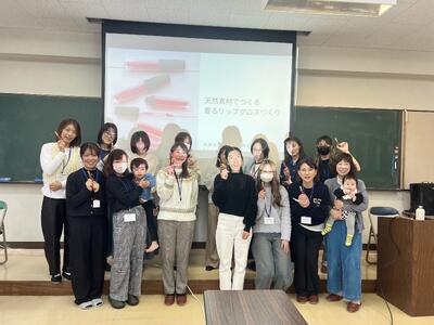*リップグロス作りに使用したミツロウは、PTA本部会計の白井和弥さんの養蜂場から提供していただきました。安心安全の無添加ミツロウの提供をありがとうございました。