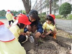 10月17日(水)の教育入門Ⅱは、北摂中央幼稚園、ポルト保育園の園児を招いての「芋ほり交流会」でした。