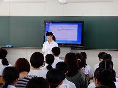 説明会では、各教室で放送部による司会進行のもと、校長挨拶、生徒会長による学校PR、生徒会による学校紹介、教育課程の説明、子どもみらい類型の生徒による類型の紹介、本年度オーストラリア短期海外研修に参加者した生徒による海外研修の紹介と、生徒が主体となって中学生に本校の魅力を語りました。その後、個人相談や部活動自由見学を行いました。大盛況の中で、あっという間に時間が過ぎて行きました。参加していただいた中学生の皆さん、保護者、教員の皆さん大変暑い中ご参加いただきありがとうございました。