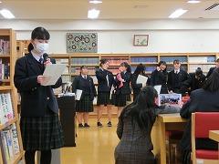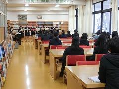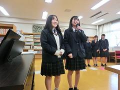 11月25日(木)13:00から図書室で、第2回図書館ミニコンサートを開催しました。3年生音楽選択クラスの発表で、元気な歌声でアップテンポの曲が披露されました。