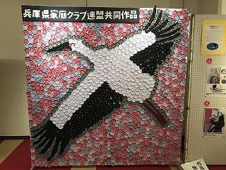 昨年から兵庫県の家庭クラブ員が計画して、協力して創りあげたつまみ細工の作品。本校家庭クラブ員は黒のチェック柄の部分を担当しました。