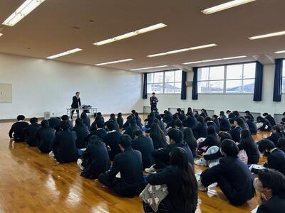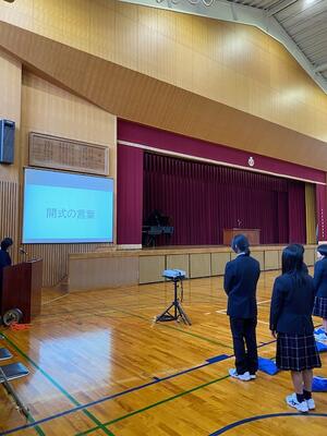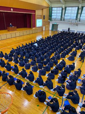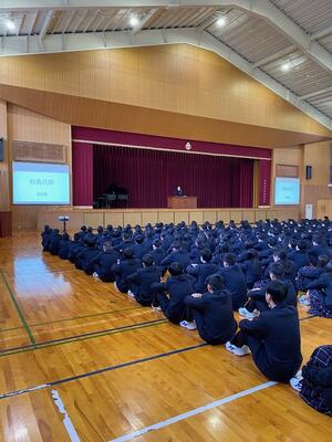 体育館に集まると、佐用高校の式典ならではの光景があります。