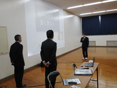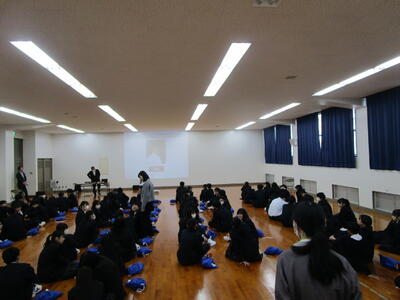 NTTソリューションズ株式会社より、田中様・小川様を講師に招き、1年生対象の情報モラル講演会を行いました。