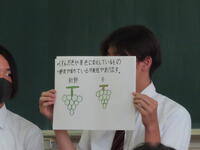 インタープリテーションは、見えるものを通して見えないものを伝えていく手法です。生徒たちは、今週末の11日(土)にグラミンカ佐用に宿泊される人を対象に、本校でブドウ狩り体験をする時に話すことを、5班に分かれてプレゼンテーションをしました。