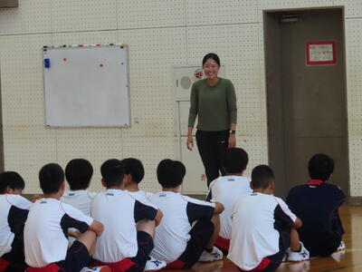 開会式では、校長あいさつで、「力合わせ 心一つに 走り出す 汗のしずくは 未来の光」の自作の歌を紹介し、みんなの気持ちを合わせてクラスで団結して、勝ち負けよりも精一杯諦めずにプレーする大切さを伝えました。