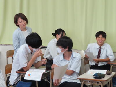 インタープリテーションを活用した地域資源活用をテーマにして、農業科の担当の長尾先生が企画し、外部講師としてインタープリターの仲上美和先生が、2年1組農業科学科の授業で、「地域資源活用の実践と課題」(インタープリター)の授業をされ、来校した先生方は見学されました。