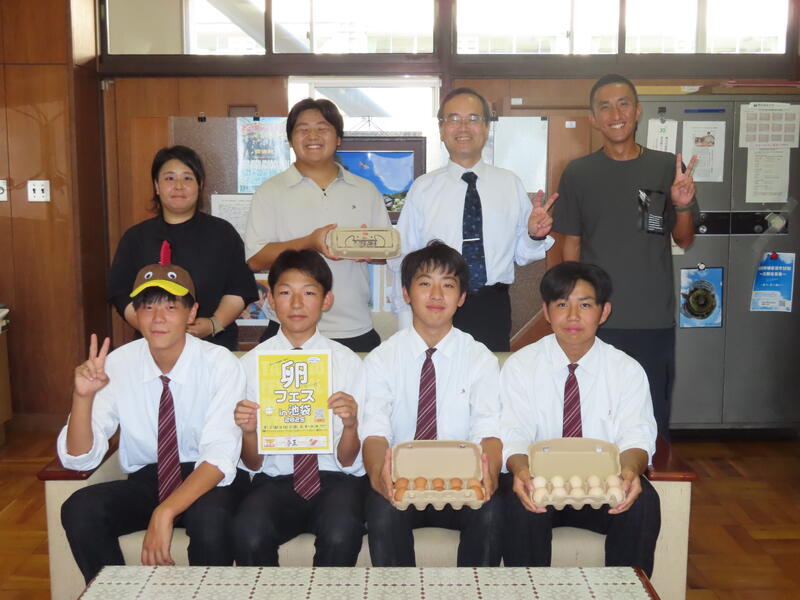10月10日(金)、農業科学科の「こっこくらぶ」の生徒達が、来週末の10月17~19日に東京で開催される「卵フェスin池袋2025」への出場報告に校長室を訪れました。
