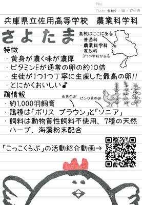 10月2日(木)、佐用駅前のコバコWork&Campいおいて、佐用町企画防災課が主催して、佐用町内の棚田米とともに本校のニワトリの卵「さよたま」を使ったモーニングが提供されました。