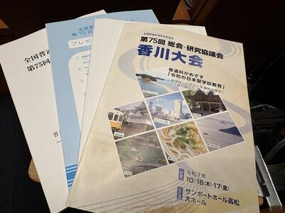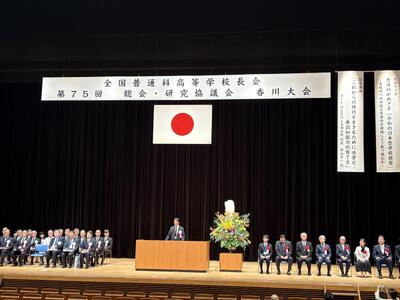 9月16日(木)と17日(金)に全国普通科高等学校長協会 第75回総会・研究競技大会 香川大会が、香川県高松市のサンポートホール高松で、全国から普通科の校長が集まって実施され、校長の私も参加しました。大会テーマは、「普通科がめざす『令和の日本型教育』~多様性への対応と共通性の確保にどう取り組むか~」として実施されました。