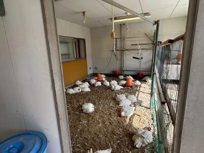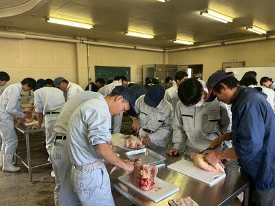 10月24日(金)の3~6時間目、本校の肉加工室において、1年生農業科学科の「農業と環境」の授業で、ニワトリのブロイラーを育て始めて57日目に、屠畜(とちく)(家畜の肉食処理)の授業を、農業科学科長の竹内先生の指導のもとで実施した。