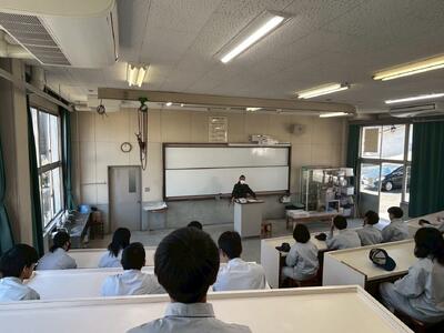 関山先生は、本校の卒業生で、佐用高校に勤めることを大変嬉しく思っておられます。家庭科の実習教員として、生徒指導部の先生として、茶華道部の顧問としてお世話になります。生徒の皆さんは、熱心に聞いてくれていました。1年間の後半のスタートを、良い形で切ってください。