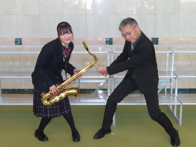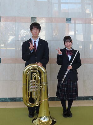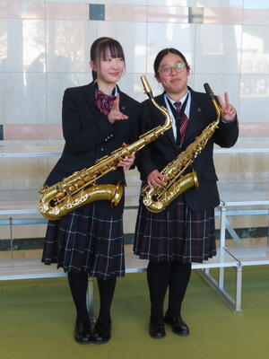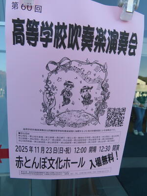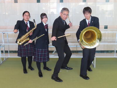 11月23日(日)、第60回高等学校吹奏楽演奏会が、赤とんぼ文化ホールで行われ、西播磨の吹奏楽部24校が参加し、本校の吹奏楽部の4人も顧問の谷口先生と一緒に出場しました。