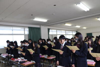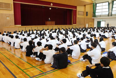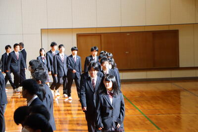 西播高等学校吹奏楽連盟会長である校長の私は、開会式のあいさつで、「今日11月23日は「勤労感謝の日」ですが、「ストレスオフの日」「ラク家事の日」でもあるので、演奏するのに「ストレスオフ」にはならなくても、互いの発表で労う気持ちを伝えることはできるし、多くの保護者の方が来られているので帰ったら日頃の家事の感謝を伝えるとともに明日も休日なので少しでもお手伝いができたら良いですね。日頃の成果を精一杯はっきしてください。」と伝えました。
