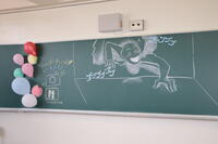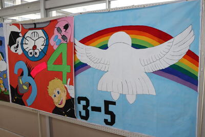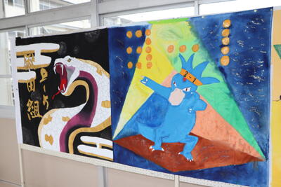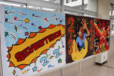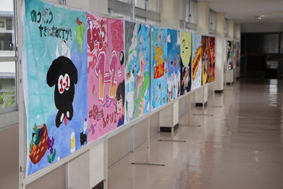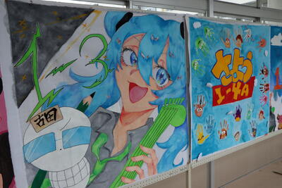 10月に東京で実施された「卵フェスin池袋」での「さよたま」が全国で3位となったことを、懸垂幕を作成して玄関の右の勝手口の上に掲げました。懸垂幕の下には「卵」が描かれており、良い感じになっています。生徒達がこの懸垂幕を見て、頑張る意欲と元気が出て欲しいと思います。