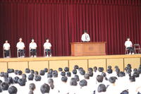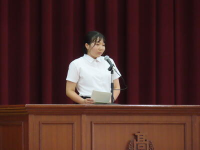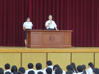 開会式のあいさつで、県視聴覚部会会長である校長の私から、「伝えようという思い」「知ってもらいたいという思い」が一番大切であることと、1,2年生の新人戦の大会なので、他校と交流もして高め合って今後に繋げて欲しいと話しました。
