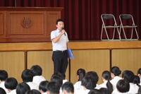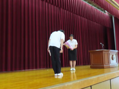 来賓として、宝塚歌劇オーケストラでトランペット奏者である森元陽介さんが来られて、閉会式で講評をいただきました。「楽器が上手くなったら楽しい」「上手くなるには練習が必要」「小さな学校でもアンサンブルのように素晴らしい演奏だった」と伝えて頂きました。