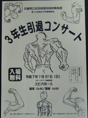 佐用高校は6番目の出場でしたが、谷口先生が1曲目はピアノ演奏、2曲目はドラム演奏で、生徒4人で人数は出場高校の中で一番少なくても頑張っていた姿に、涙が出るくらい感動しました。会場からも、感動したの声をたくさん聞きました。また、一番最後の演奏として、JBfMSB2025として小規模校8校が合同で2曲演奏し、本校の生徒も参加して大人数での素晴らしい演奏でした。