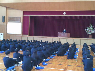 また、本校に11人の先生が着任され、代表して垣内先生が「佐用高校に来て短いですが、早く慣れていきたい。どんどん、話しかけてほしい」と言われてました。