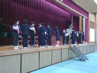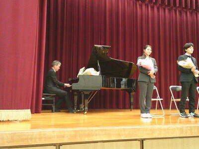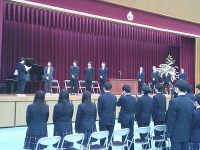 校歌斉唱では、離任される音楽の谷口先生が校歌を演奏して下さいました。