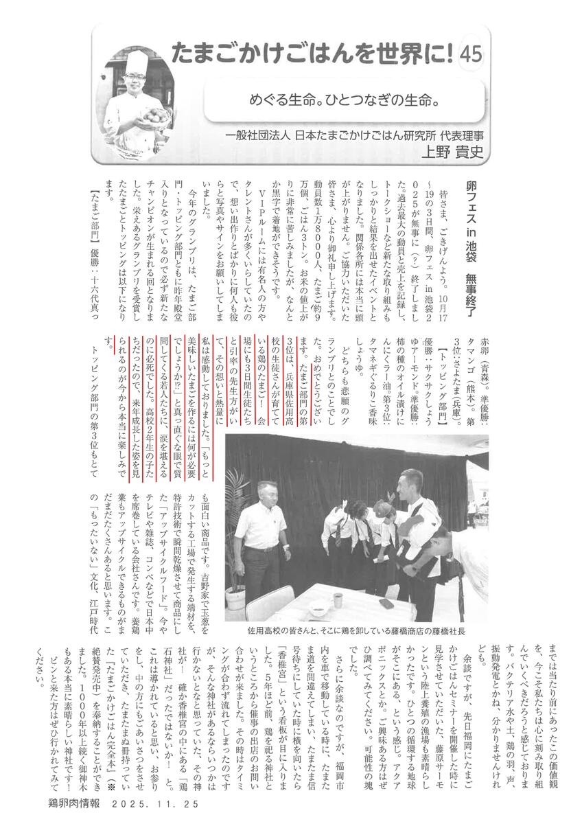 月刊誌「鶏卵肉情報」に卵フェスin池袋でたまご部門3位の本校の内容が掲載【11月15日号】