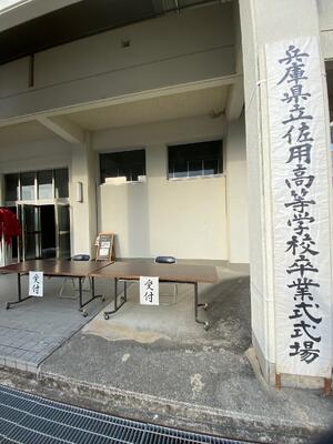 生徒昇降口には、春本先生の授業で生徒たちが育てた花も飾られ、