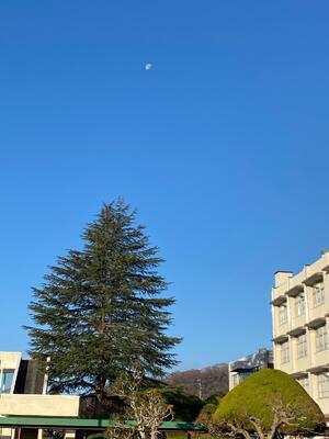 今朝ふと空を仰ぐと、青空の中にぽつんと残る白い月。